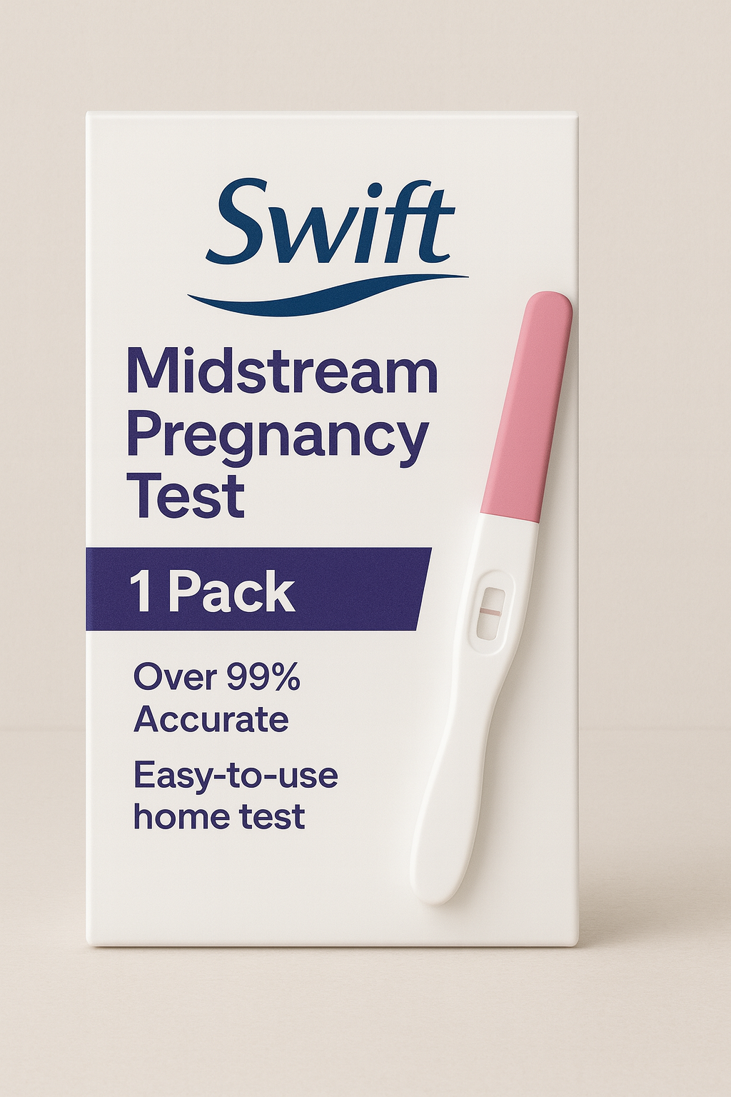 Highly sensitive midstream test designed for early detection before your missed period. No cup needed; clear line results in minutes with a comfortable, mess-free design.
