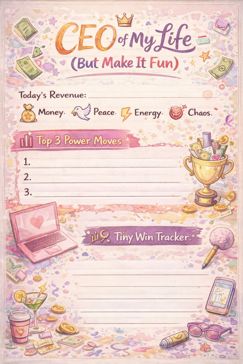 CEO of My Life (But Make It Fun) – Daily Planner Sheet